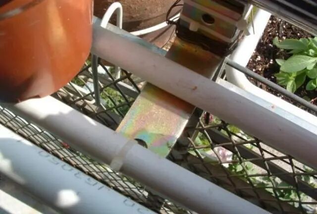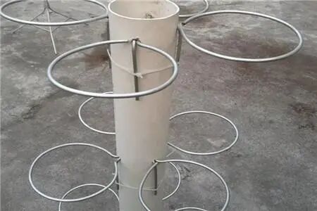 然后交叉插到PVC管里,伸出来的部分,向弯折,并且找东西捆绑固定住。