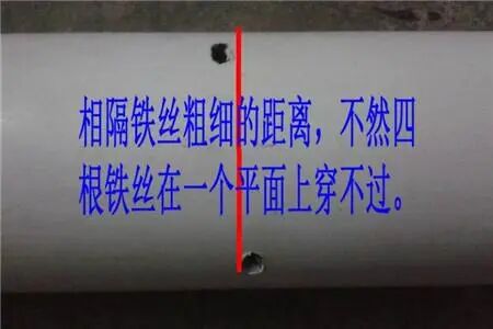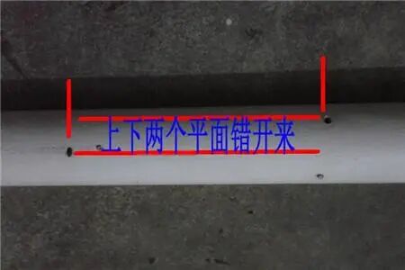截取一段1米左右的PVC,然后每隔20厘米,用电烙铁打出一个小孔,上下两个面都要打,打的时候,要错开,前后4个孔不能在同一个水平面上,如下图: