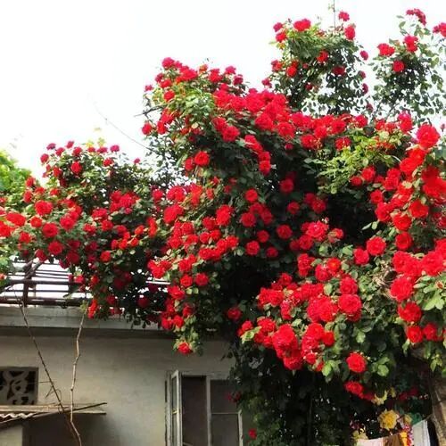 如果你想打造一片花海,那么藤本月季小女孩,是你不错的选择,花季一到,就能给你片红色的花海,喜庆又漂亮。