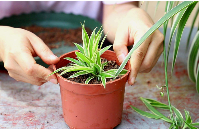 剪下来的吊兰植株上,如果有一些小吊兰,我们可以把它们连带下部的根剪下来,重新栽种,又能得到一盆新吊兰。