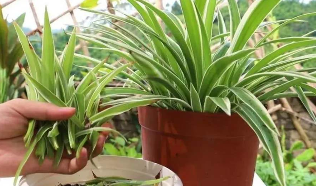 修剪的时候需要注意,不要把叶片剪得太秃,留下4、5厘米的部分,可以在生长的过程中进行光合作用,有的花友给吊兰剃头,直接剃秃了,剃秃后有可能就一点也不长了。