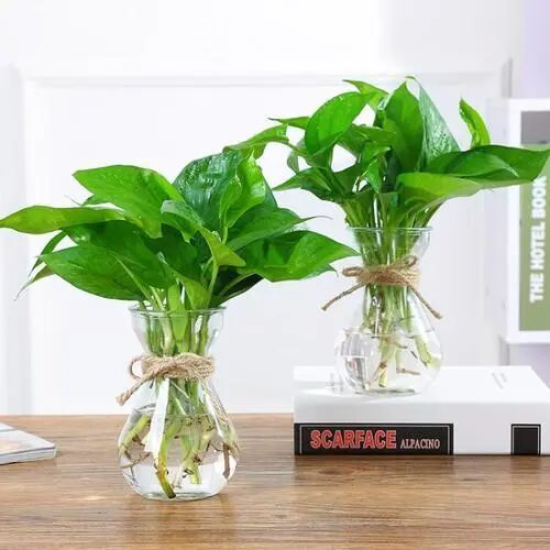 土培的绿萝,特别爱黄叶,用水培的方式就可以避免这个问题。将几个绿萝枝条放在水培瓶里,摆放在光线明亮的位置,大约10天左右就能生根。生根后保持水培瓶里一直有水即可。