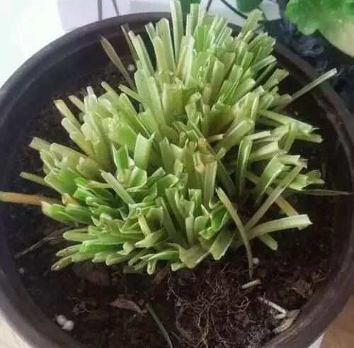 修剪吊兰,要狠狠剪,把上面的叶片都修剪掉,留下3—5厘米的部分用于光合作用,只要根系还是健康的,很快在叶片中间会有新叶钻出来,新长的叶片翠绿、肥厚,特别有生机。