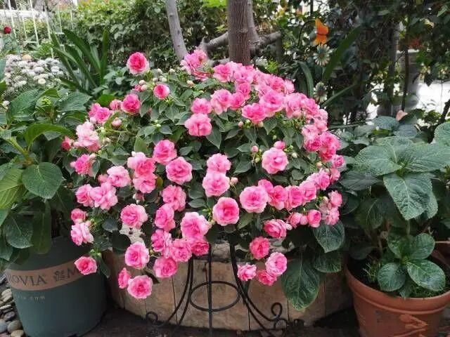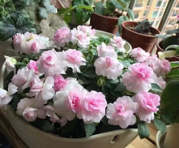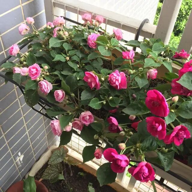 这种凤仙花是来自非洲的重瓣凤仙花,叫做‘非洲重瓣凤仙花’,也叫做非凤,它和咱们传统的指甲花是近亲,是由园艺观赏品种,由人工杂交培育而成,植株低矮丛,易发分枝,花开花,花朵绚丽多姿,是国际上流行的观赏花卉,有广泛的种植,可以作花坛可以阳台盆栽,近年来在我国受到众多花友喜欢,养在阳台上很漂亮。