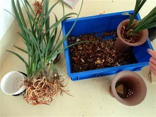 上盆:给兰花上盆,也是有技巧的。它和君子兰一样,根系比较粗壮,没有什么毛细根,上盆方法不当,根系和盆土之间又空隙,就会导致换盆失败。正确换盆方法如下: