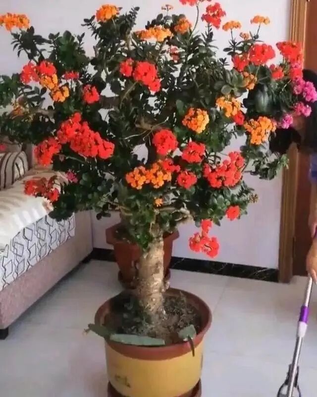 咱们平时看到的长寿花,都是小小和一盆,放在窗台上,小巧又精致,但是你见过像树一样的长寿花吗?个子长到1米8,比一般的人还要高,如下图: