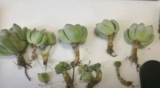 经过修根和晾根的多肉,根系特别有活力,它可以直接吸收盆土的养分和水分,同时新根长得也快,那么它服盆的速度就特别快,恢复生长也特别快,百分之百成活。