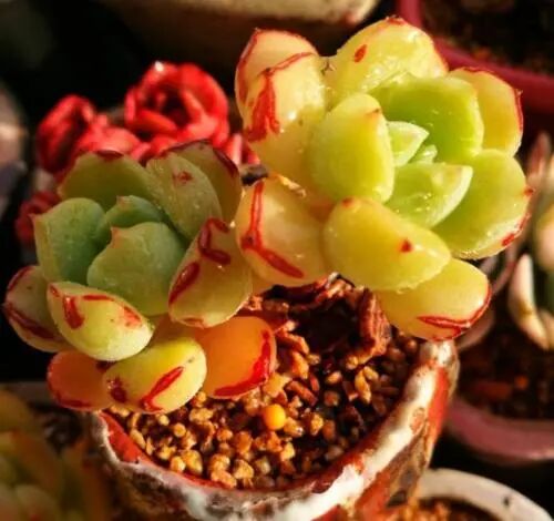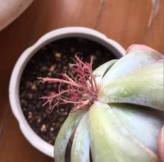 当然,在多肉服盆的过程中,先把它放在阴凉、通风的位置养护一周左右的时间,看到它的叶片挺实了,说明已经服盆了,这个时候再给它浇水,移到光照充足的位置正常养护就可以了。