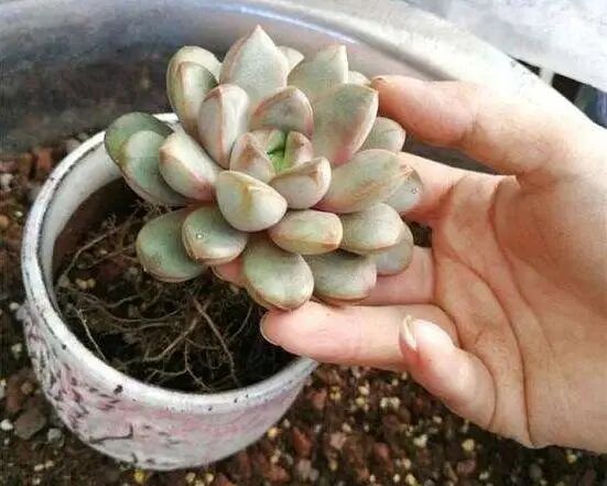 给多肉换过花盆的花友都知道,多肉的根系又细又软,数量多,有些毛细根已经老化了,留着它空吸收养分,还会抑制新根的生长呢,所以说,给多肉换盆,咱们要把这些毛细根修剪掉,修剪的方法如下: