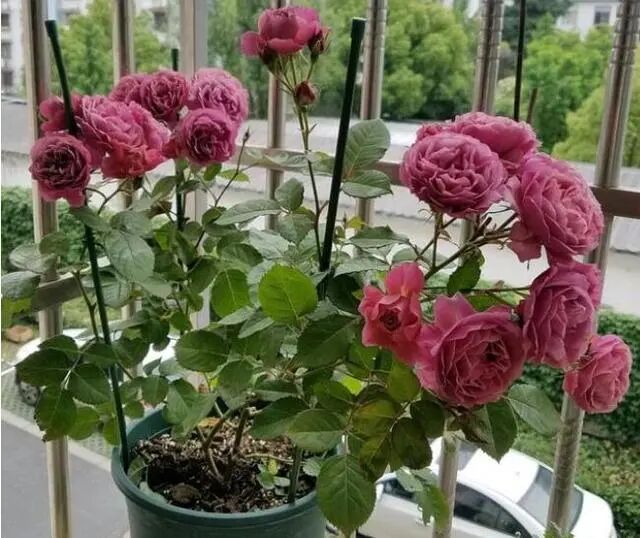 导读里面咱们已经说了,月季花葵的枝条很容易扦插,所以咱们剪下来的枝条不要扔,可以用来扦插,极易成活,有心的花友,一年养出几十盆,那都不是事。