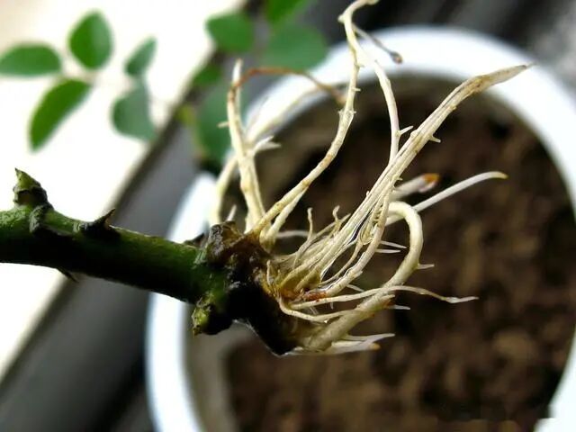 月季花的扦插一年四季皆可进行,以春秋两季最佳,冬天扦插要以老枝为好。不管是啥时候扦插都需要剪取它健壮的枝条,以1年生半木质化的最佳,剪取剪取8-10厘米,只保留上面的2-3片叶子,切口以倾斜45度为好,剪好后,晾干伤口,用生根水浸泡20分钟左右,取出晾干即可