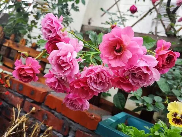它就是月季的一种名字叫做“葵”,是月季花里最好养的一种,它抗病能力强,好养易分枝,易多头群开,花量大,家里养一盆,很快就爆盆。
