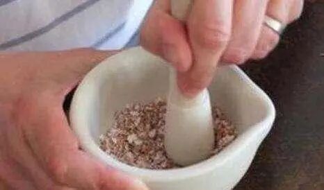 第二步:用工具将鸡蛋壳捣碎至粉末状,收集到容器里,就可以使用了。