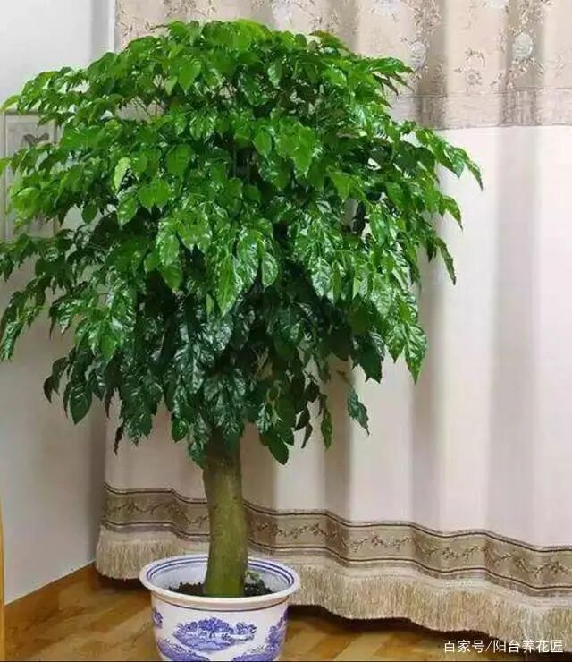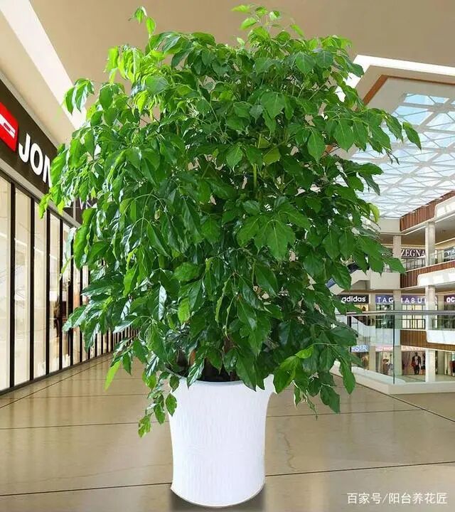 招财树属于一种全年都保持翠绿的灌木,由于它的叶子看起来犹如一只只在抓东西的小手,因此也被称之为“八方来财”,是一种具有吉祥寓意的植物,它还有个名字就是鸭掌木。此外,招财树的一个叶柄可以长5-8片叶子,呈掌状复叶,长椭圆形,革质,墨绿色,叶形独特,非常大气,如果在家里养上1盆,无论是放在客厅,还是卧室里,看上去都大气又漂亮,可以瞬间提升主人的家居品位。