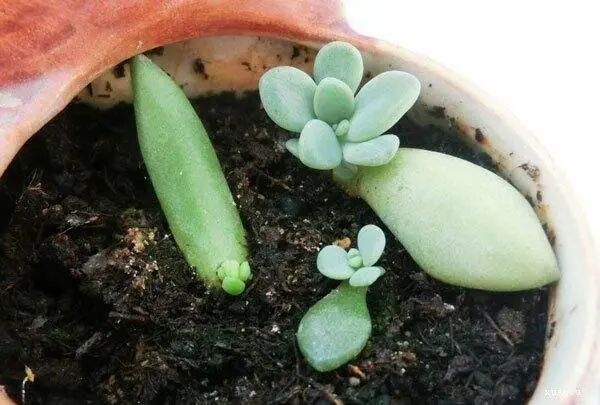 先把土壤喷成微湿的状态,然后把插穗插入土壤中,放在光线明亮的位置,盆土干了记得喷水,保持微湿,大约半个多月就能生根,有的插穗会长新叶片,有的插穗会直接长小花苞,特别可爱。