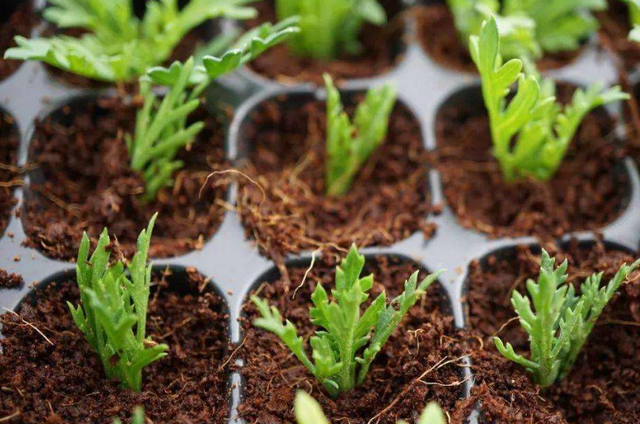 选择玛格丽特植株上开过花的枝条,截取顶端5-8厘米的部分,留下上面1-2对叶片,然后插入育苗盒里,保持基质潮湿,很快就能生出根系来,成活率特别高。