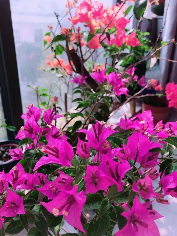 家里养一盆三角梅,不管是放在窗台上,还是放在阳台上都很合适,养护的时候,施肥要均匀,一个月施2次复合肥,一次磷钾肥,就能让它不停的开花。