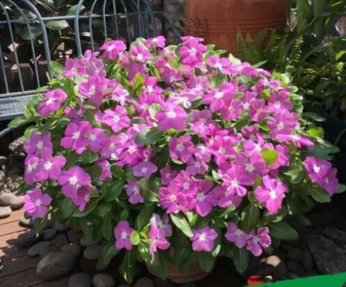长春花是一种草本花卉,它是一种生长不停,就能开花不停的植物,不管是啥季节,只要温度在15度左右,就能一直生长一直开花,它每长出2片叶子,就能冒出4朵花,易开花爆盆。
