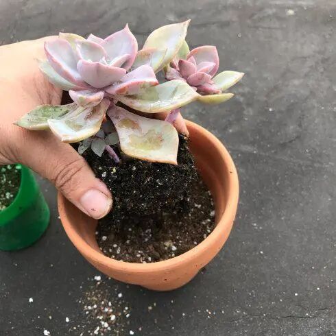 给叶片肥厚的花卉上盆,修根后也需要经过一个晾根的过程,等伤口干瘪了,再进行上盆。上盆有两种方法:一种是潮土上盆,上盆后待花卉完全服盆了,再浇一次透水;一种是直接上盆,等上3-4天,再浇一次定根水。