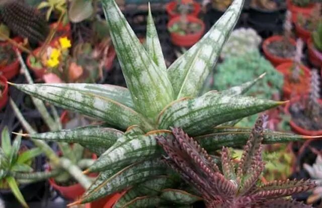 虎皮兰是一种很常见的以观叶为主的盆栽花卉,又名虎尾兰、千岁兰、锦兰……是一种多年生的草本植物。具根状茎,叶茎生,枝叶一体,挺拔直立,叶形独特,株型优美,有较高的观赏价值,虎皮兰对环境的适应能力很强,品种有很多,比较常见的就是金边虎皮兰,银脉虎皮兰……有较强的净化能力。