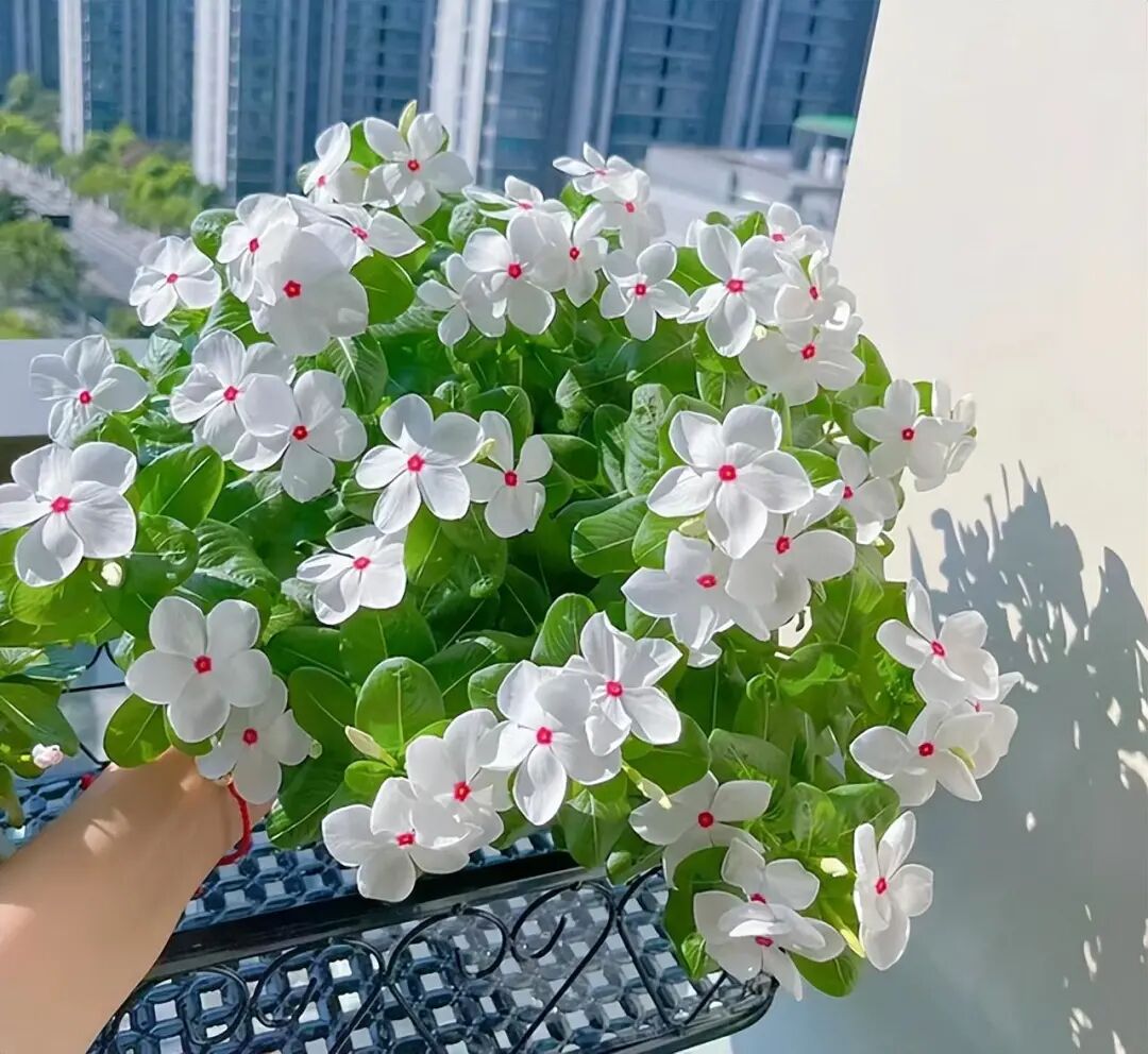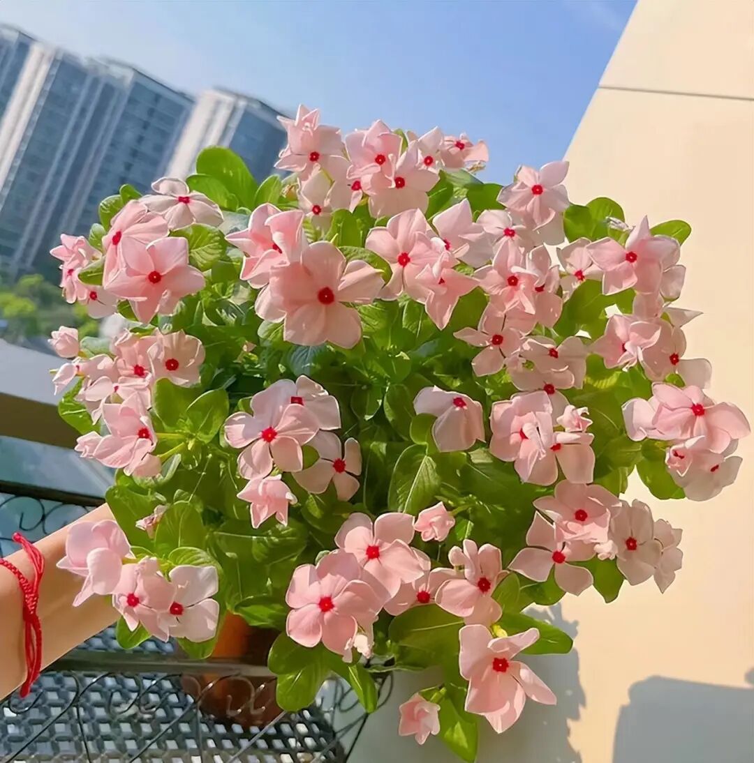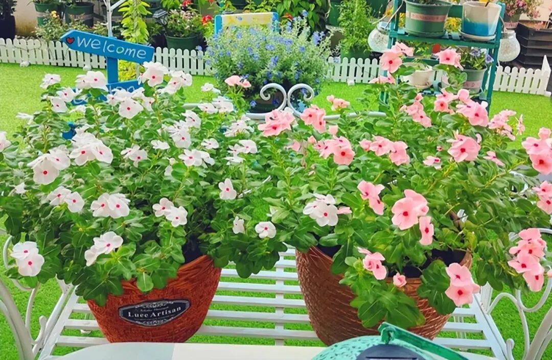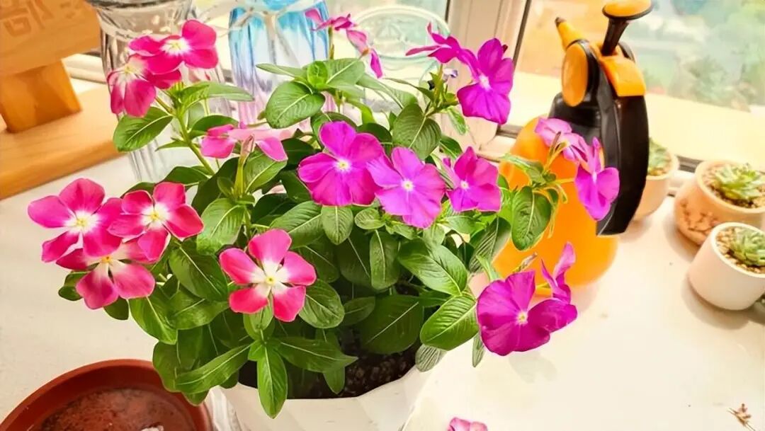 如果你是养花新手,如果你正愁该养什么花,如果你时间精力有限又喜欢养花……我都建议你考虑一下长春花,买几个不同颜色的品种,2—3小盆拼到一个大的花盆里,天天都有花看,公认的“开花机器”,养过的都会说“真香”。