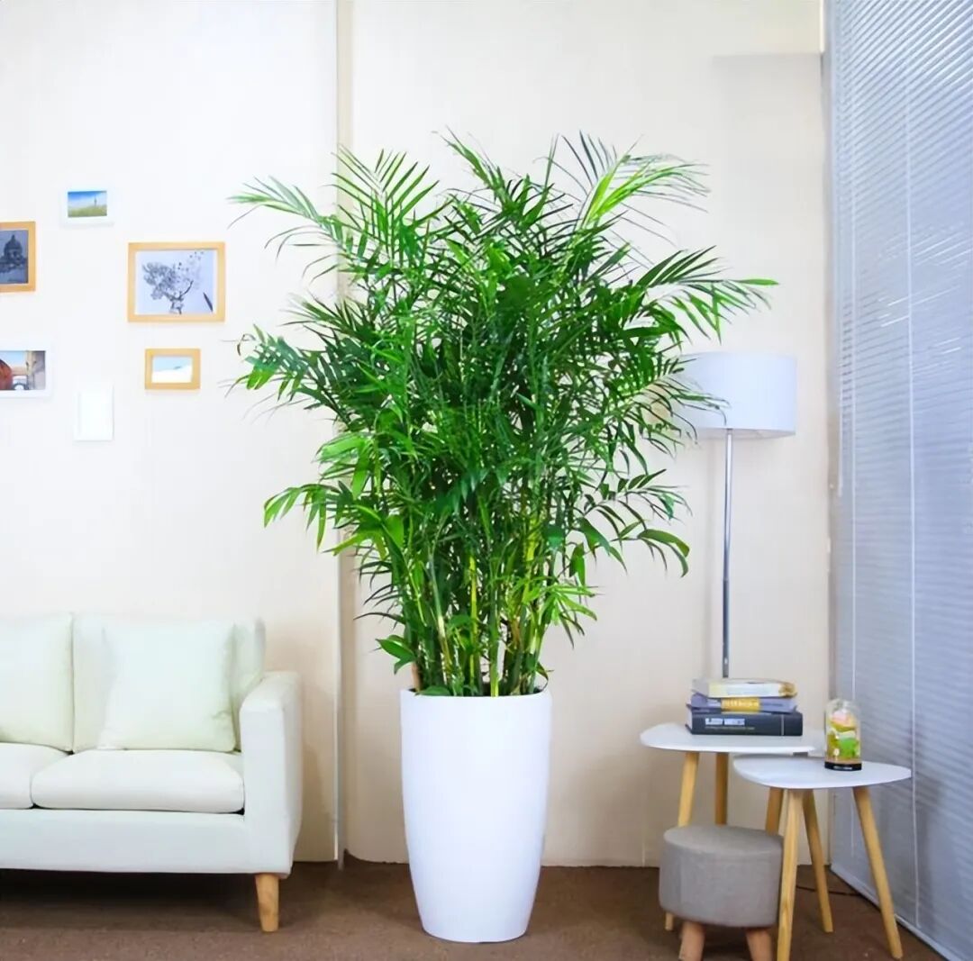 散尾葵又名黄椰子,是一种丛生小灌木或是小乔木,枝干呈嫩黄叶,大大羽状复叶,像一片片的大羽毛,飘逸洒脱,四季郁郁葱葱,放在家里十分养眼,因为它的叶片四散开来,所以它有着“飞黄腾达、四方来财”的美好寓意。散尾葵生长的过程中,还有很强的“蒸腾作用”,所以它能增加空气湿度,养在室内,能让室内的空气更清新,利于家人的健康。