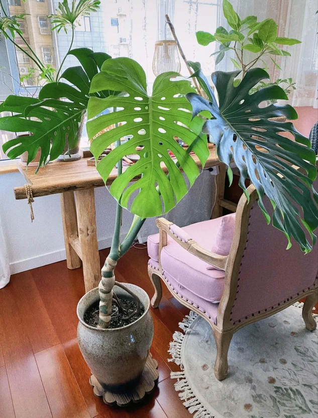 龟背竹在生活中很常见,也是近两年比较流行的“网绿绿植”,观赏价值高,净化能力强,所以喜欢养的人很多,它的寓意很吉祥,不仅有“旺财的寓意”,还有“增福增寿”的美好寓意,对光照的需求不多,有些散光就能长,春夏时节是它的生长旺季,建议保主证有充足的水分和养分,它就能快速的长新叶子,很快就能长满一大盆,做好造型,美观大气有格调,且养得越久,净化能力越强。