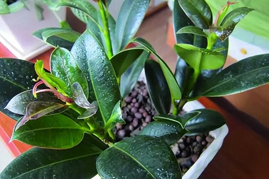 砍头之后的橡皮树,若是伤口长好了,一定要多喷施水雾,在这之前,建议多擦拭叶片,能让叶片起来更美观,能让叶片油亮有光泽,擦拭的时候,最好兑一些复合肥水溶液,或是观叶植物营养液,兑成1:500的水溶液,用软布沾着擦拭叶片,能达到施叶面肥的效果,能让它的叶片肥厚,油亮有光泽,能让叶更美,净化能力更强。