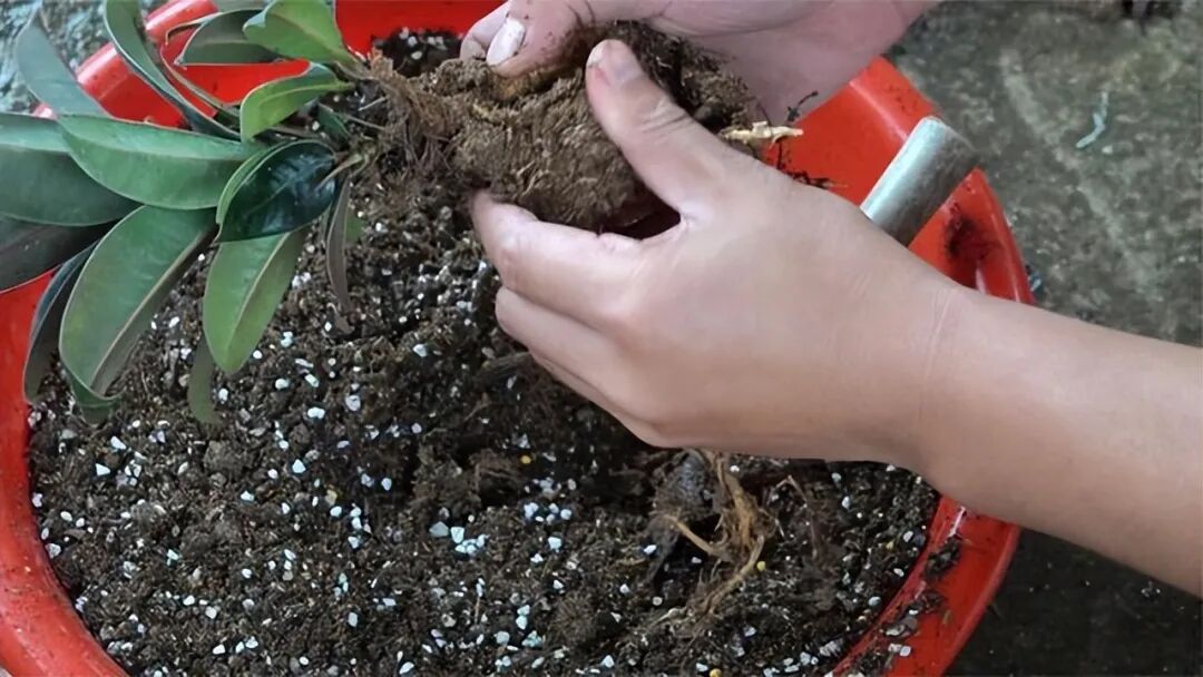 给橡皮树翻盆之前,建议得前控水一周左右,土壤稍微干一些,利于根系与土壤分离,能减少对根系的损伤。