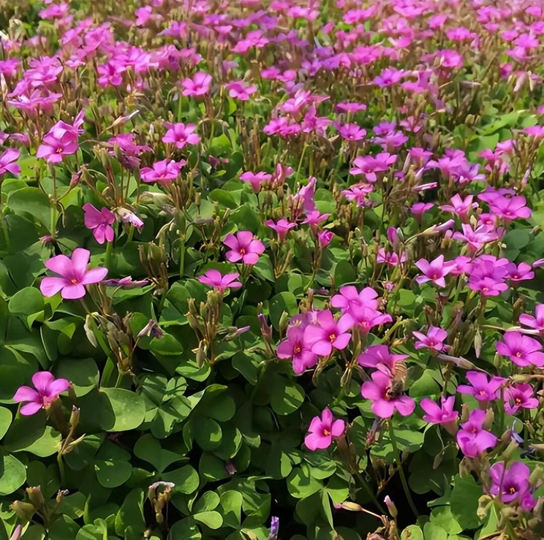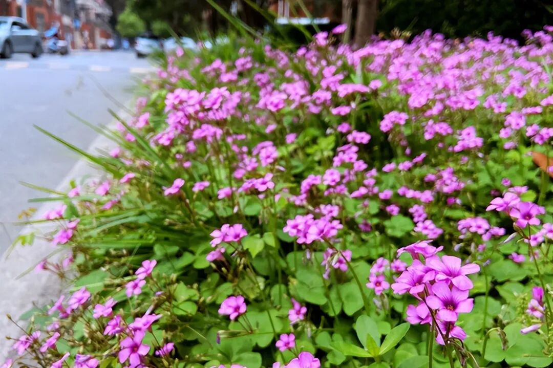 粉花酢浆草,在前些年,很多地区的绿化带里,都能见以它的身影,后来人们才发现它的繁殖能力很强,绿化带里,若是想改种其它的植物,铲除了一次又一次,还是能“春风吹又生”,并且能很快的覆盖着新栽种的植物,只要还有一点残留的根系,它就能再次长满一大片,特别是春夏时节,雨水多,它的生长速度更加的惊人。