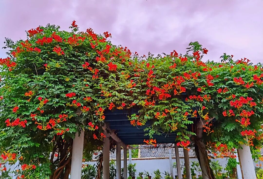 凌霄花的适应性很强,耐寒又耐热,对土壤也没有什么要求,在我国大部分地区,都能生长,它的生长速度还很快,栽种之后,只要成活,几乎不用管,就能不断的生长,特别是在春夏时节,得到了充足的雨水,它根叶都能快速生长,地上,枝叶茂盛,一串串的开花,地下,根系到处长,长到一定的程度,还能长出新的植株,真的是到处泛滥,或是不想让的小苗长大,只能不停地铲除,若是没有人为干涉,有上三五年,满院子都会是凌霄花,根本没有其它的花草的生长空间。