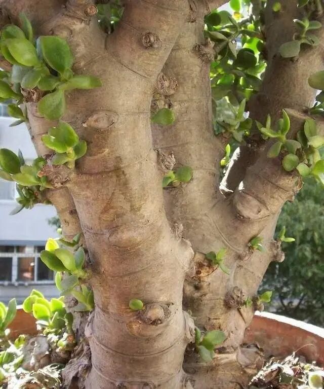 玉树在生活中很常见,很多人都喜欢在家里养一盆,它的叶片肥厚,温润有光泽,养得时间长了,枝干粗壮,慢慢的老化,遒劲有力,看起来犹如古树,所以被称“玉树”。