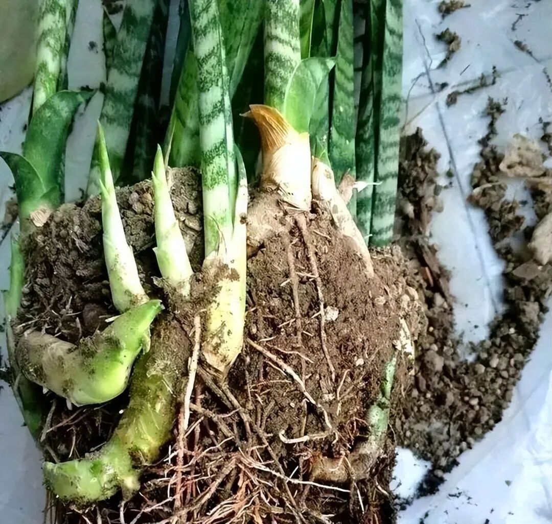 给虎皮兰换过盆的人,都知道,虎皮兰的根系有两种,一种是吸收养分的水分的毛须根,还有一种就是粗壮的横向根,新芽就是直接从横向根上长出来的,所以横向根是否强壮,直接决定了虎皮兰能不能多长新芽。