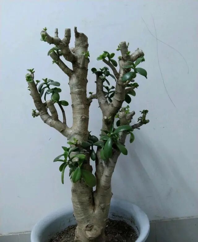 对于这样的玉树,若是不大刀阔斧的修剪,想让它变美真的是太难了,最简单有效的方法,就是在保留想要主枝的情况下,把侧枝什么的大量修剪,给它“剔光头”,可以说剔得越狠,以后它的株型就越美。