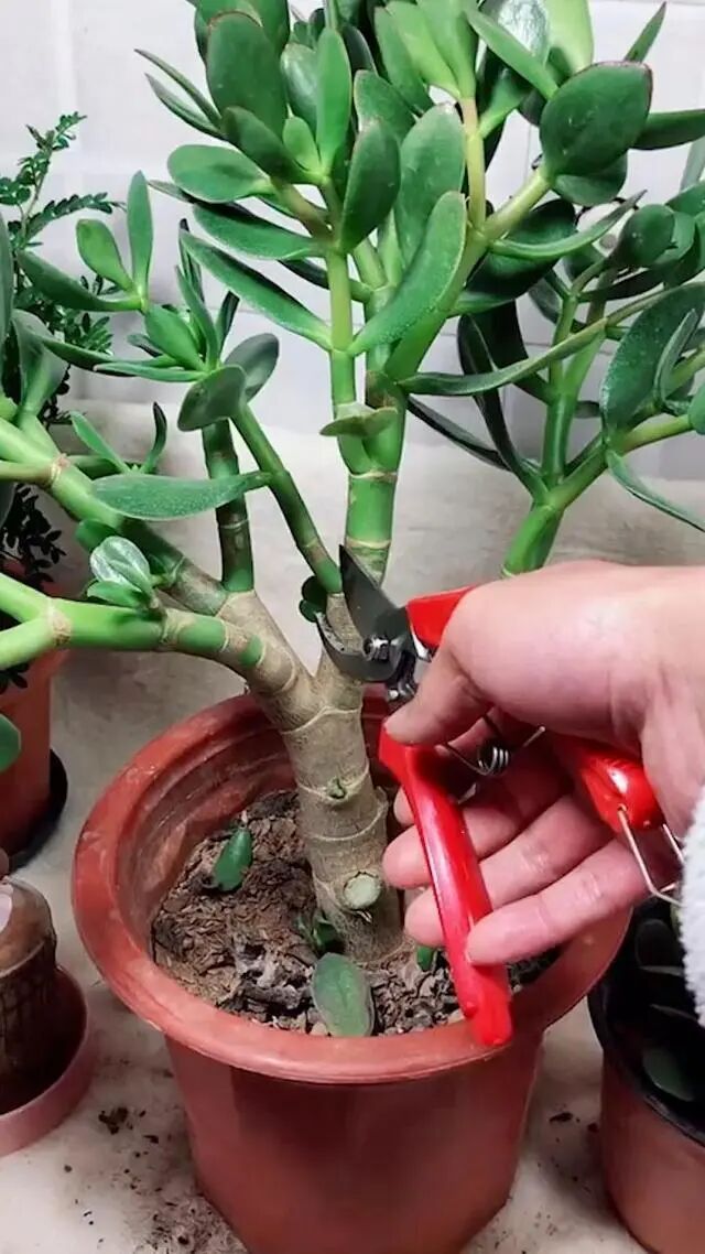 玉树因为生长快,枝叶易散乱,为了保持株型,所以要定期的修剪,一般是入冬前有一次大剪,也可以按排在入春前。但是为了减少养分的消耗,让它冬天的抵抗能力更强一些,一般是入冬前剪更加的合适,这次修剪,就需要大刀阔斧的剪,可以只保留主干的,也可以把影响株的“细枝末节”,全部剪掉,按自己的喜好,随意的剪即可。