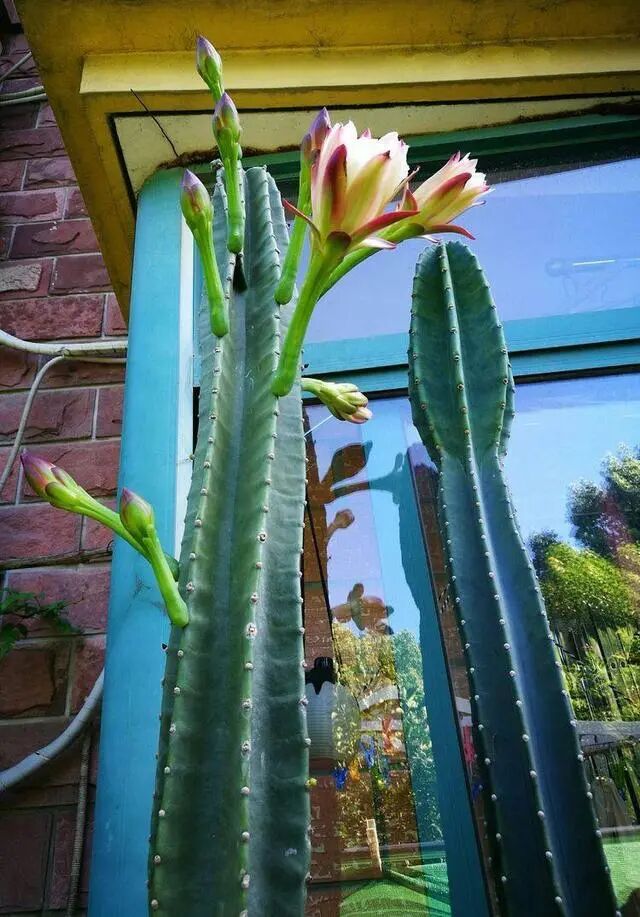 量天尺是仙人掌科的攀援植物,能长得很高大,有些温暖地区,室外生长的量天尺能长到六七层楼那么高,年年开满大大的花朵,高大壮观又漂亮。