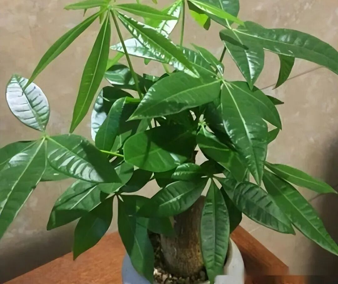 但喜欢养发财树的人虽多,能把发财树一直养的郁郁葱葱的人却不多,大多数人养的发财树,都容易烂根黄叶子,尤其是在寒冷的冬天,发财树的死亡率更是直线上升,这主要是因为发财树的耐寒性不好,冬天养护除了要给它一个适宜的生长环境,温度不可低于15度,还要合理的浇水,水分不当,极易出问题,所以冬天养发财树要懒一些,穷养更利于它“过冬”(少水停肥多晒太阳)。