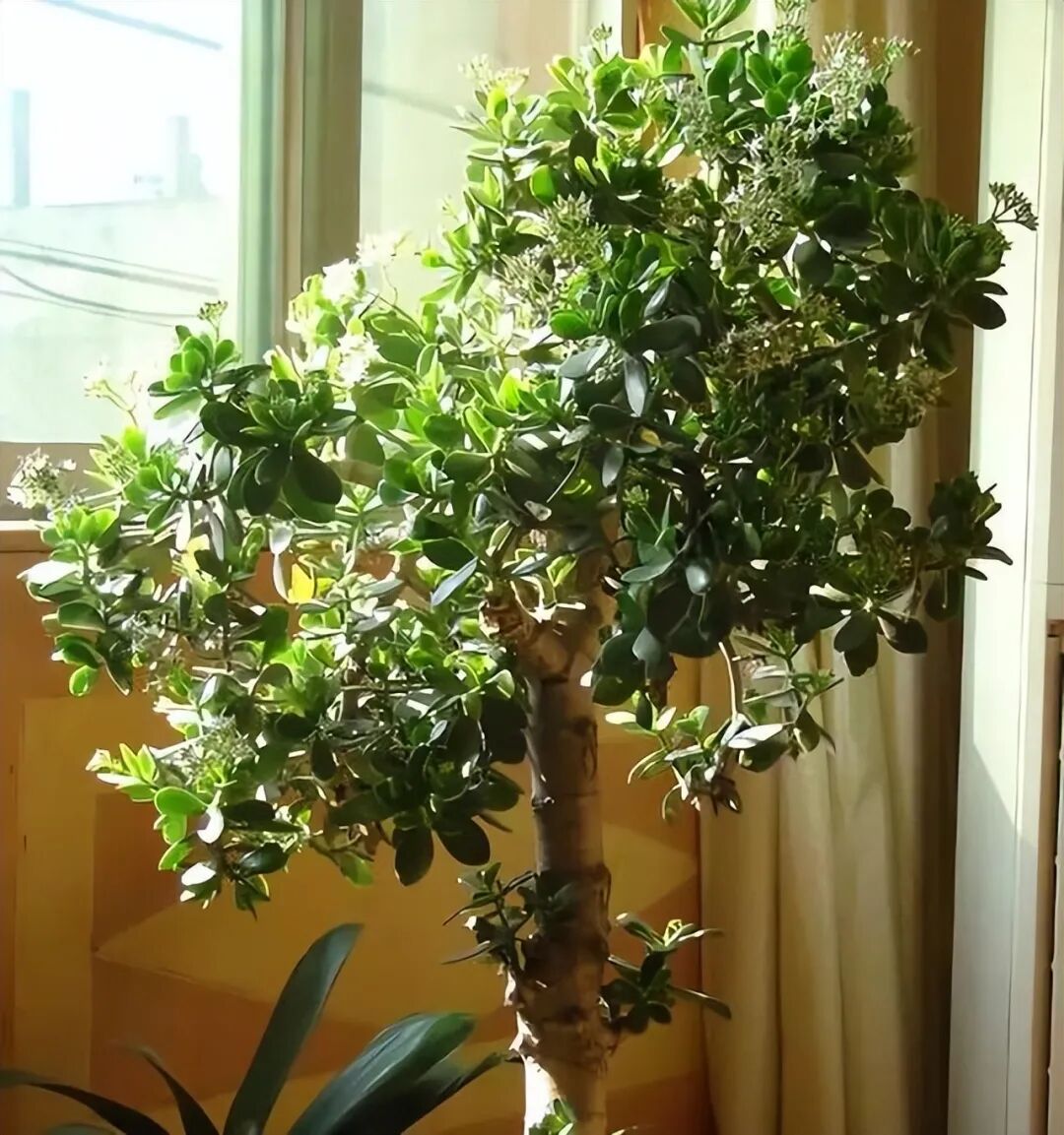 盆栽玉树,越冬之后,不要过早的出室,不然一场“倒春寒”,就是长得再高大的玉树也有可能冻趴下,再想恢复到最佳态,就很难了。