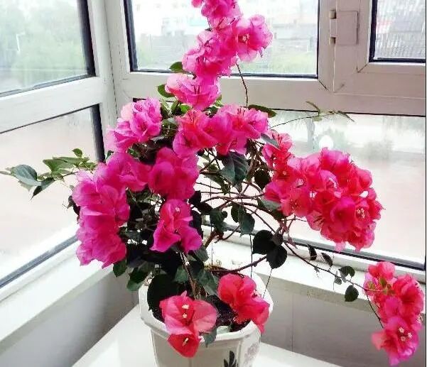 三角梅是一种木质藤本花卉,南方地区,很多地方都是养在庭院及绿化带内,不用管也能开成一片花海,近年来三角梅盆栽也受到大家的喜欢,它是一种叶子花,花型独特又漂亮,花色也很丰富,家里养上几盆,选择勤花的品种,一年四季都开花。