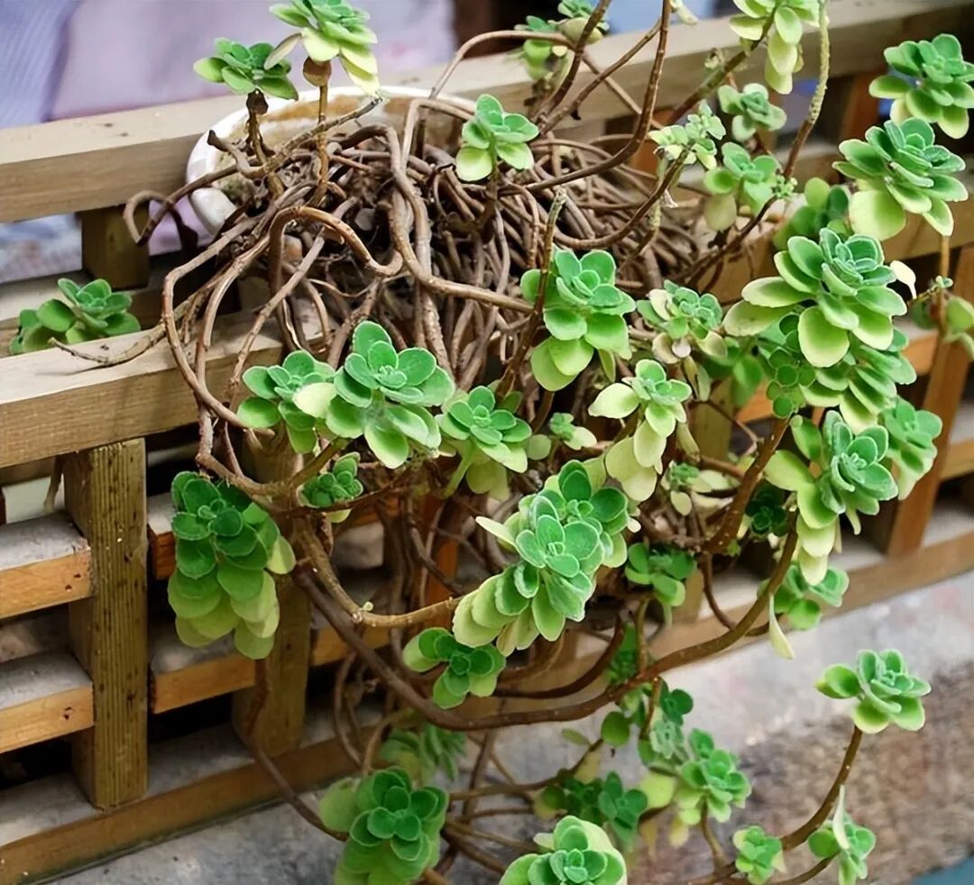 碰碰香是一种多浆植物,属于多年生灌木草本植物,叶片圆润,肥厚多汁,纹理清晰,整个株型看起来清新淡雅,养得久了,枝干还能木质化,脱离“草”的形态,形成小老桩十分别致。