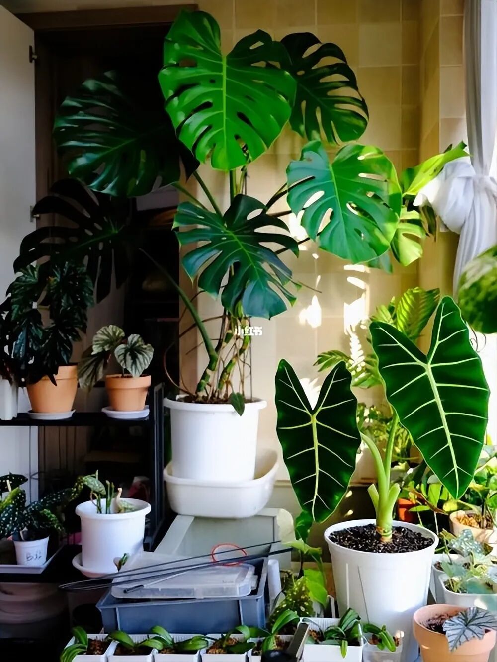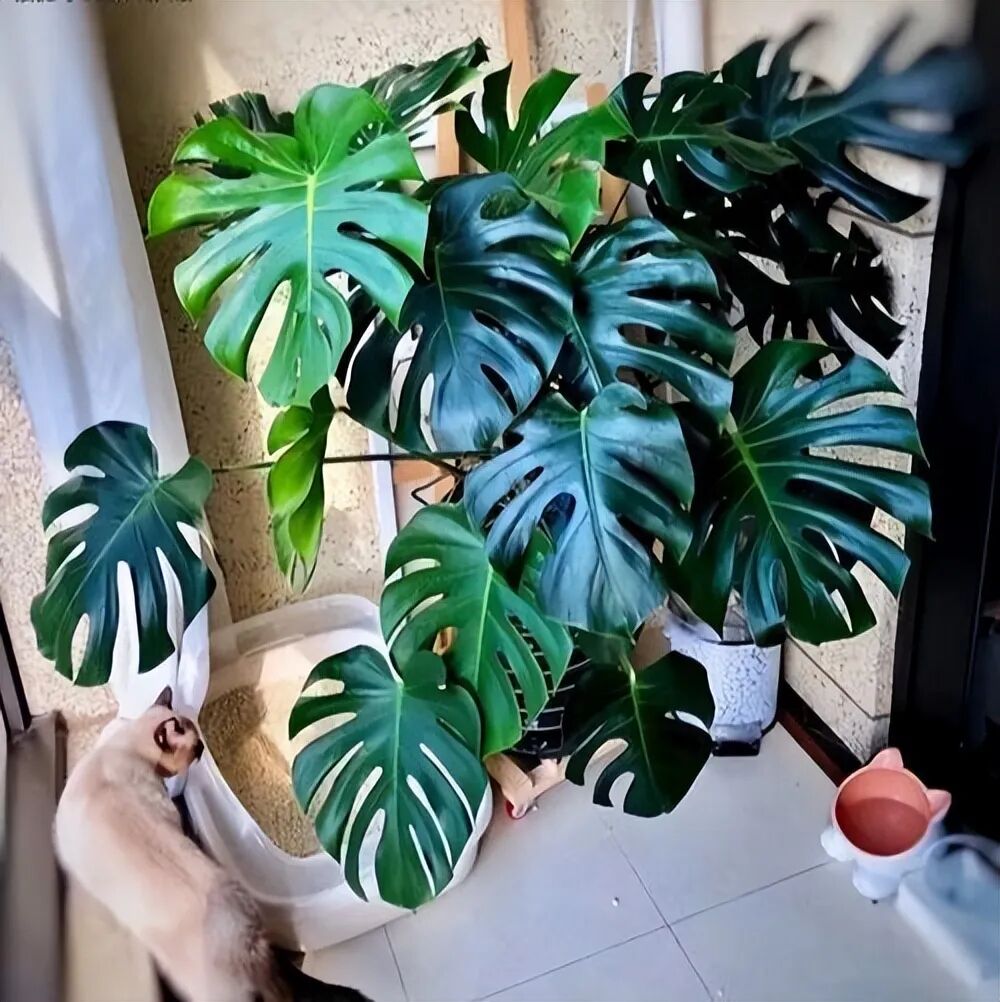 龟背竹的整个株型时尚大气,有一股浓郁的简约风,十分适合装饰现代化的家居,养护起来也很省心,就像普通的绿萝一样好养,土壤三四成干浇一次水,平时多喷水雾,一个月施一两次主含氮的复合肥或是观叶植物营养液,就能长得郁郁葱葱,十分好养。