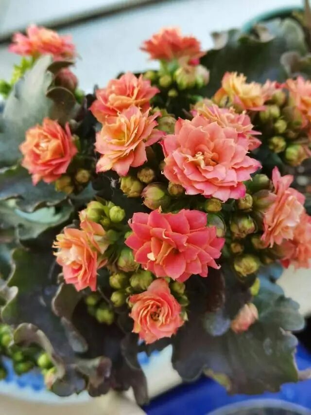 长寿花的花朵虽然不大,但是花量大,一个花箭有无数个小花苞,小花簇拥成团,也能开成一个大花球,需要注意的是,冬天长寿花也能开花,但是它不耐低温,到了冬天若是想让它持续开花,需要放在室内养护,温度最好能保持在15度以上,所以长寿花秋冬时节,要早入室,放在客厅或卧室一两盆,温馨吉祥又可爱。