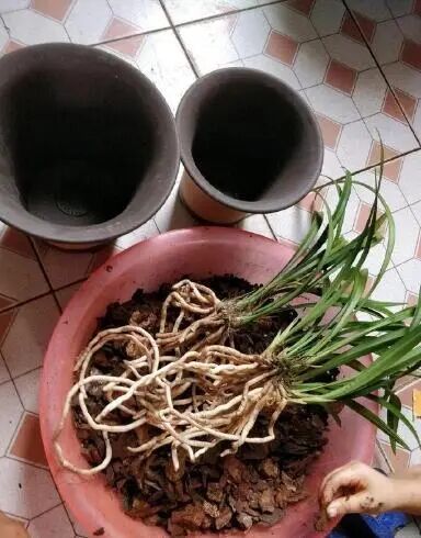 购买兰花前最好先备好植料及兰盆,这样兰花买来后,就能及时上盆,上盆的时候,要先在盆底垫入一些陶粒,并把较粗的植料垫于花盆的底部。