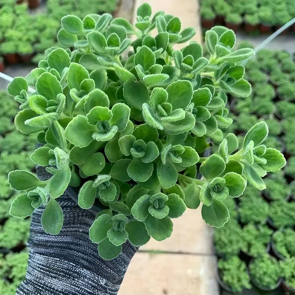 碰碰香植株看起来可爱又清新,它属于一种多肉类植物,其叶片上长有一层毛茸茸的细毛,所以它也被人们叫作绒毛香茶菜。不管是叫碰碰香还是叫绒毛香茶菜,它的名字里都含有“香”字,由此可见它是一种可以散发出香味的植物。