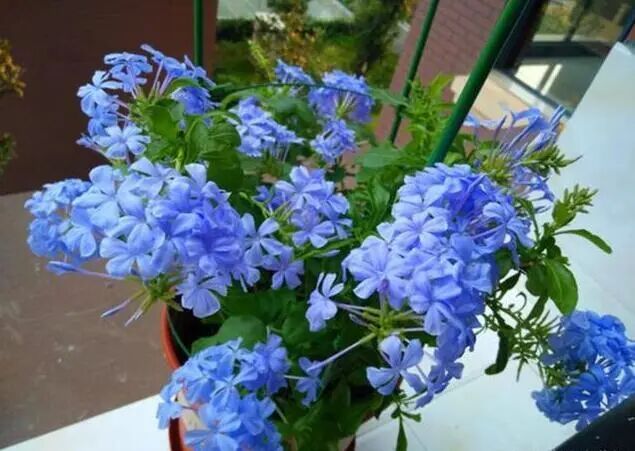 想要一种花卉多开花,磷钾肥一定要充足,一般蓝雪花在幼苗期及生长期的时候,多用主含氮的复合肥或是有机肥,有利它枝叶的生长,促进植株长高长壮,多发分枝,就能让它长得枝繁叶茂。当它长到一定的高度,盆栽的根据花盆的大小,来定(注意不要让植株出现盲长,会影响开花),就不再用氮肥了,施肥要改用磷钾肥,以促进它开花。