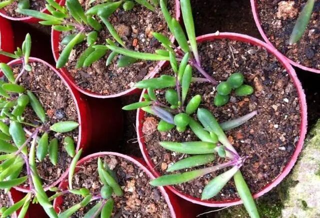 若是你也喜欢紫玄月,不妨趁着春光正好,动手来扦插,只需要剪取一段带有3个叶片以上的枝条(低于3片无法成活),插到腐叶沙质土里,喷湿水,放在散光通风的地方,每天注意喷水保湿,一般7-10天就能生根,生根后,放在光线充足的地方, 盆土表面发干就浇水,25-30天就能长满一大盆。