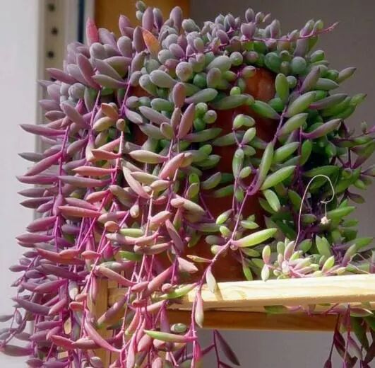 紫玄月的观赏价值很高,是近年来比较流行的多肉类吊兰,养护也简单,若是您吊兰、绿萝养腻了,不妨换换紫玄月,我个人感觉它很美很独特。