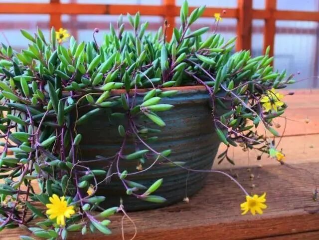紫玄月又被称为黄花新月,这两个名字都是根据它的生长特征来起的,它的叶片肥厚多汁,像一弯弯的新月,能开出黄色的小花,最独特的要数它叶片的颜色,能随着阳光而变化,