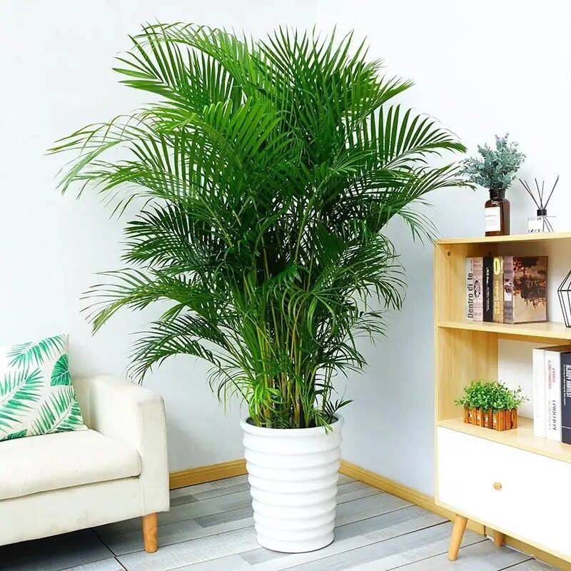 散尾葵是一种多年生的丛生小灌木,枝干嫩黄色,叶片大而翠绿,像一个个的大羽毛,小叶柔软,尾端可以自然弯,看起来十分的飘逸洒脱,整个株型看起来颇有一股热带风情,放在家里很大气,且它的枝叶在生长的过程中,还能很强的的“蒸腾作用”,能增加空气湿度,是有名的“自然加湿器”,养在家里,可以改善空气质量,利于健康。
