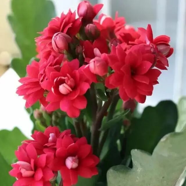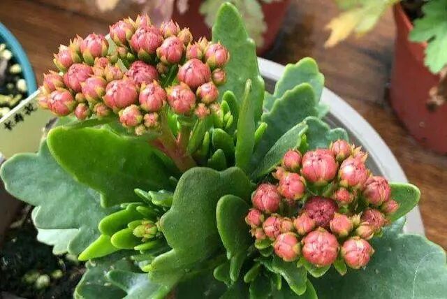 长寿花是一种多浆类的植物,它的叶片肥厚多汁,茎杆富含水分,花朵不大,但花量大,一朵花上能长很多个小花苞,簇拥成团,极易开成一个大花球,它和君子兰一样,主要花期都在冬春时节,喜庆又大气,有着健康长寿花的寓意,是有名的年宵花。